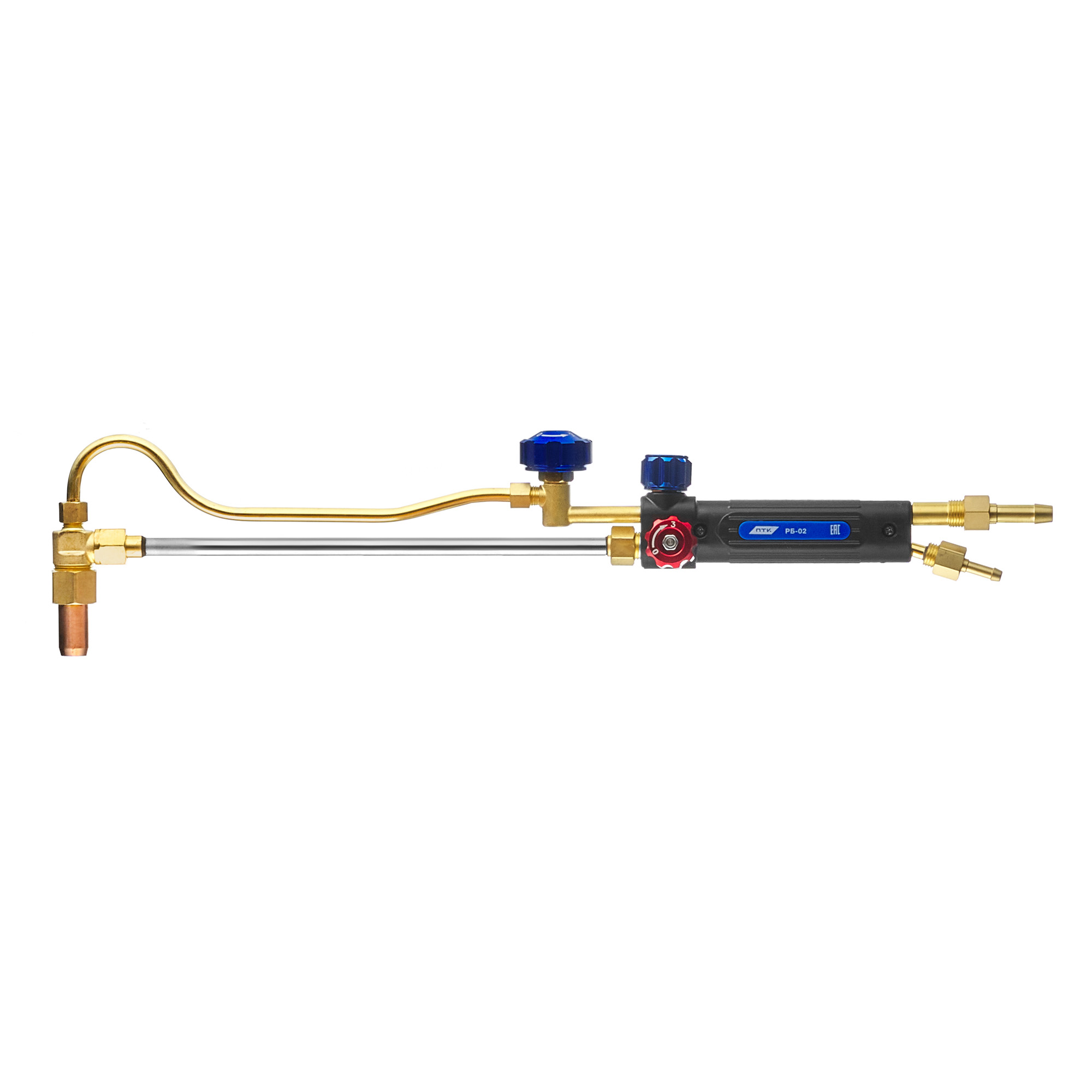 Резак жидкотопливный бензиновый РБ-02 – это бензино-кислородный резак, который предназначен для ручной разделительной резки низкоуглеродистых сталей толщиной до 200 мм с использованием в качестве горючего бензин марки «А-76», «АИ-91», «А-95 по ГОСТ 2084-77, а также бензин марки «Нормаль-80» и «Регулятор-91» по ГОСТ 51105-97.Бензинорез является жидкотопливным резаком «распылительного» типа. Бензин через капиллярную трубку поступает к головке, где подхватывается кислородом подогревающим (КП) и, обогащая его, образуется аэрозоль кислородо-бензиновой смеси с последующим испарением аэрозоли в кольцевом канале между нагретыми наружным и внутренним мундштуками.Резак поставляется в сборе с наружным мундштуком и с внутренними мундштуками №2Б, 3Б, 4Б с кольцевыми зазорами для выхода подогревающего пламени, с наружной резьбой М 8х1 мм для накручивания катушки. Давление на входе и расход зависит от установленного внутреннего мундштука. В руководстве по эксплуатации указаны ориентировочные данные.Маркировка внутренних мундштуков и толщина разрезаемого металла:№1 (3–15 мм) – мундштук не входит в комплект поставки к резаку, приобретается отдельно.№2 (15–30 мм)№3 (30–50 мм)№4 (50–100 мм)№5 (100–200 мм) – мундштук не входит в комплект поставки к резаку, приобретается отдельно.Особенности резака жидкотопливного РБ-02:Классическая компоновка вентилей. Конструкция схожа с газовыми резаками инжекторного типа.Полный выход на рабочий режим в течение 2-х минут.Отличительная особенность резака РБ-02 заключается в том, что в конструкции резака отсутствует асбестовый шнур и отдельное подогревающее пламя для испарения дизельного топлива.Резак укомплектован ниппелями, что позволяет использовать резинотканевые рукава без дополнительных переходников. Ниппель для подачи кислорода подходит для рукавов с внутренним диаметром 9 мм и гайка накидная с резьбой M16х1,5. Ниппель для подачи бензина – 6 мм и гайка накидная – М14х1,5. Линза присоединения трубки режущего кислорода и гайки крепления к линзе с резьбой М12х1,25 мм.Товар поставляется в индивидуальной упаковке, что исключает бой и обеспечивает сохранность комплектации во время транспортировки и хранения на складе.Комплектация РБ-02:Резак жидкотопливный бензиновый РБ-02 – 1 шт.Мундштук наружный – 1 шт.Мундштук внутренний №2Б, 3Б, 4Б – по 1 шт.Ниппель диаметром 6 и 9 мм – по 1 шт.Гайка накидная М14х1,5 – 1 шт.Гайка накидная M16х1,5 – 1 шт.Кольцо уплотнительное резиновое – 1 шт.Руководство по эксплуатации – 1 шт.